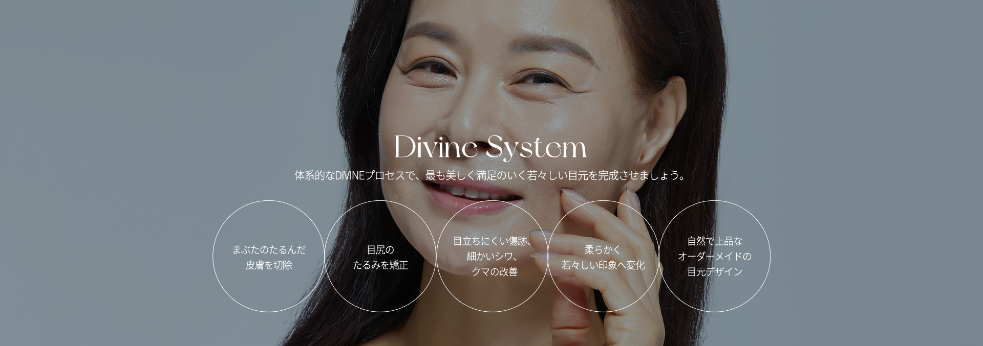 下まぶたのたるみ、ふくらみ、くぼみは改善されません。